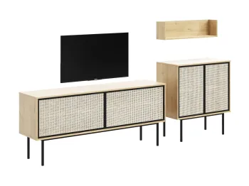 Мини стенки от ОГОГО пользуются широкой популярностью среди любителей качественной мебели, стремящихся к минимальным затратам и уютной практичной обстановке дома. Это качественная мебель, изготовленная из такого материала как ЛДСП, что является залогом прочности и долговечности данной модели. Композиция ОГОГО Boho 4 (ротанговый фасад) идеально впишется как в современный, так и в классический интерьер, и станет его идеальным дополнением.