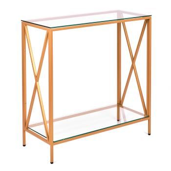 Консольный столик выполнен в стиле минимализм, сочетает простоту и изысканность вкуса. Стальная рама окрашена в золотой, черный или серебристый цвет. Прозрачная или серая поверхность изготовлена из прочного стекла. Используют как туалетный столик в спальне или гостиной. На столешницу можно поставить предметы декора, настольную лампу или букет цветов. Компактный размер легко поместить даже в небольшой комнате. Мебель производится в России. Доставка в разобранном виде, в комплекте инструкция и сборочный ключ.