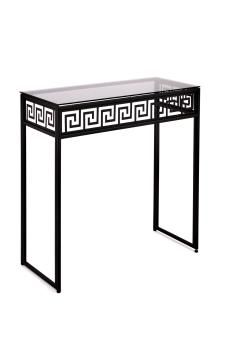 Декоративный консольный столик в стиле Лофт. Стальная рама и прозрачная стеклянная поверхность сочетают в себе совершенство линий и изящество. Модель производится в черном или золотом цвете. В спальне легко заменит туалетный столик, на котором поместятся все косметические мелочи, в гостиной используют в качестве подставки под предметы интерьера или небольшого рабочего стола. В прихожей станет незаменимой полочкой под ключи, зонты или головные уборы. Благодаря компактному размеру подойдет даже для маленького помещения.