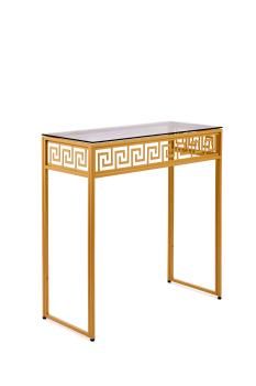 Декоративный консольный столик в стиле Лофт. Стальная рама и прозрачная стеклянная поверхность сочетают в себе совершенство линий и изящество. Модель производится в черном или золотом цвете. В спальне легко заменит туалетный столик, на котором поместятся все косметические мелочи, в гостиной используют в качестве подставки под предметы интерьера или небольшого рабочего стола. В прихожей станет незаменимой полочкой под ключи, зонты или головные уборы. Благодаря компактному размеру подойдет даже для маленького помещения.