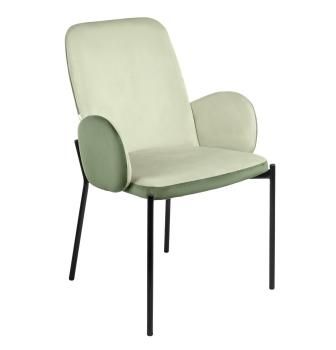 Мягкий стул Тедди – стильное решение для кухни и гостиной. Имеет контрастную двухцветную обивку из бархата и удобные мягкие подлокотники. Комфортная посадка обеспечена широкой спинкой и сиденьем правильной глубины. Благодаря прочному металлическому каркасу стул выдерживает нагрузку до 120 кг.