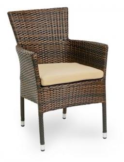 Плетеное кресло AROMA– можно использовать как самостоятельный элемент или как дополнение к набору с похожей мебелью, например плетеным столом и диваном. Это большое, просторное, комфортное изделие для домашнего пользования либо для обустройства коммерческих заведений. Модель будет уместной как в помещении так и на открытом пространстве. Кресло не боиться осадков благодаря металлическому каркасу и искусственному ротангу. Все это в совокупности делает мебель долговечной. Для большего комфорта предусмотрена мягкая подушка, которая уже включена в комплект. Также имеются высокие подлокотники. Модель доступна для заказа в нескольких универсальных цветах.