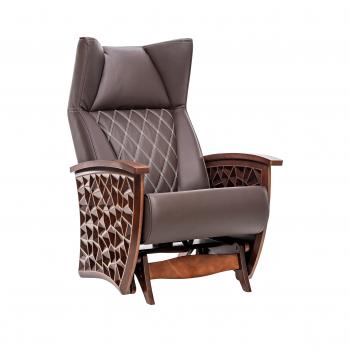 Конструкция дизайнерского кресла-глайдера «Кристалл» схожа с классической качалкой – скрытый маятниковый механизм обеспечивает плавное скольжение, а стопор позволяет остановить качание в любой момент и отдыхать, как в обычном кресле. Поставьте кресло в гостиную и интерьер заиграет новыми мотивами! Оригинальный дизайн боковин имитирует роскошь кристаллов, а «ушки» формируют ауру уединенности, прикрывая часть лица. Выберите максимально комфортное положение спинки, чтобы отдохнуть полноценно. Угол наклона – сидя, полулежа, лежа. Эргономичное сиденье, плотный подголовник и спинка, мягкие подлокотники расслабят мышцы, снимут тревожность, нормализуют сон. Каркас выполнен из березовой фанеры с эмалью – кресло с механизмом маятника выдерживает нагрузки до 150 кг.