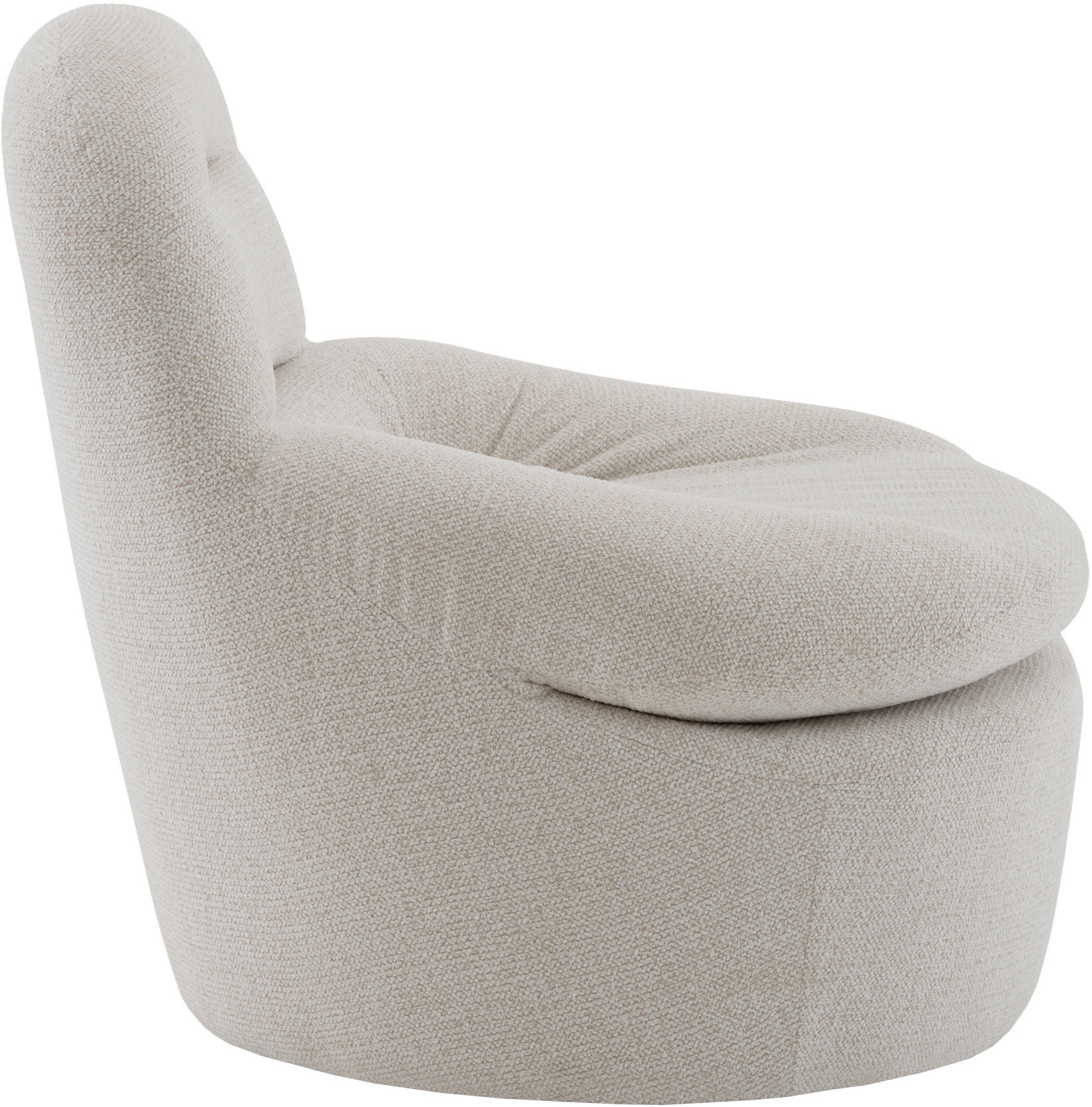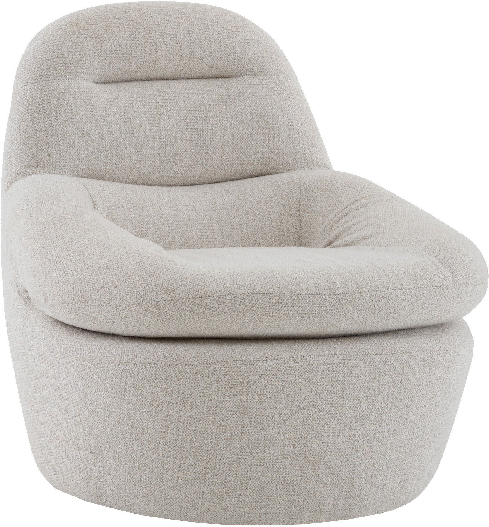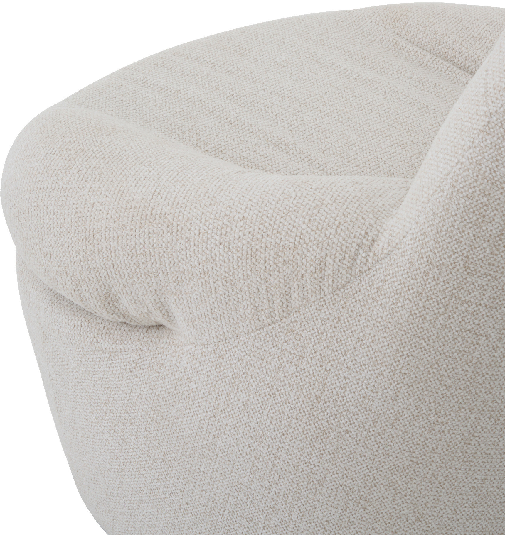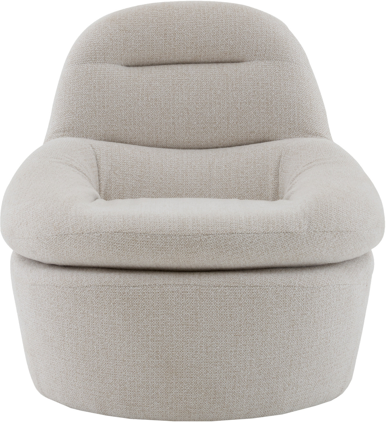 Кресло выполнено в современной лаконичной эстетике с плавными, обтекаемыми формами, придающими ему визуальную мягкость и уют. Элегантный цвет обивки делает модель универсальной — она легко впишется как в минималистичный, так и в скандинавский интерьер.