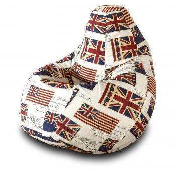 Кресло-мешок груша Флаг выполнен из прочной жаккардовой ткани. Внешний чехол съемный, что позволяет легко ухаживать за пуфиком.