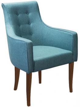 Кресло Чикаго выполнено в трёх вариантах обивки. Элегантные плавные линии высоких ножек, изготовленных из массива бука переходят в подлокотники. Линия подлокотников переходит в спинку, декорированную шестью мебельными пуговицами.