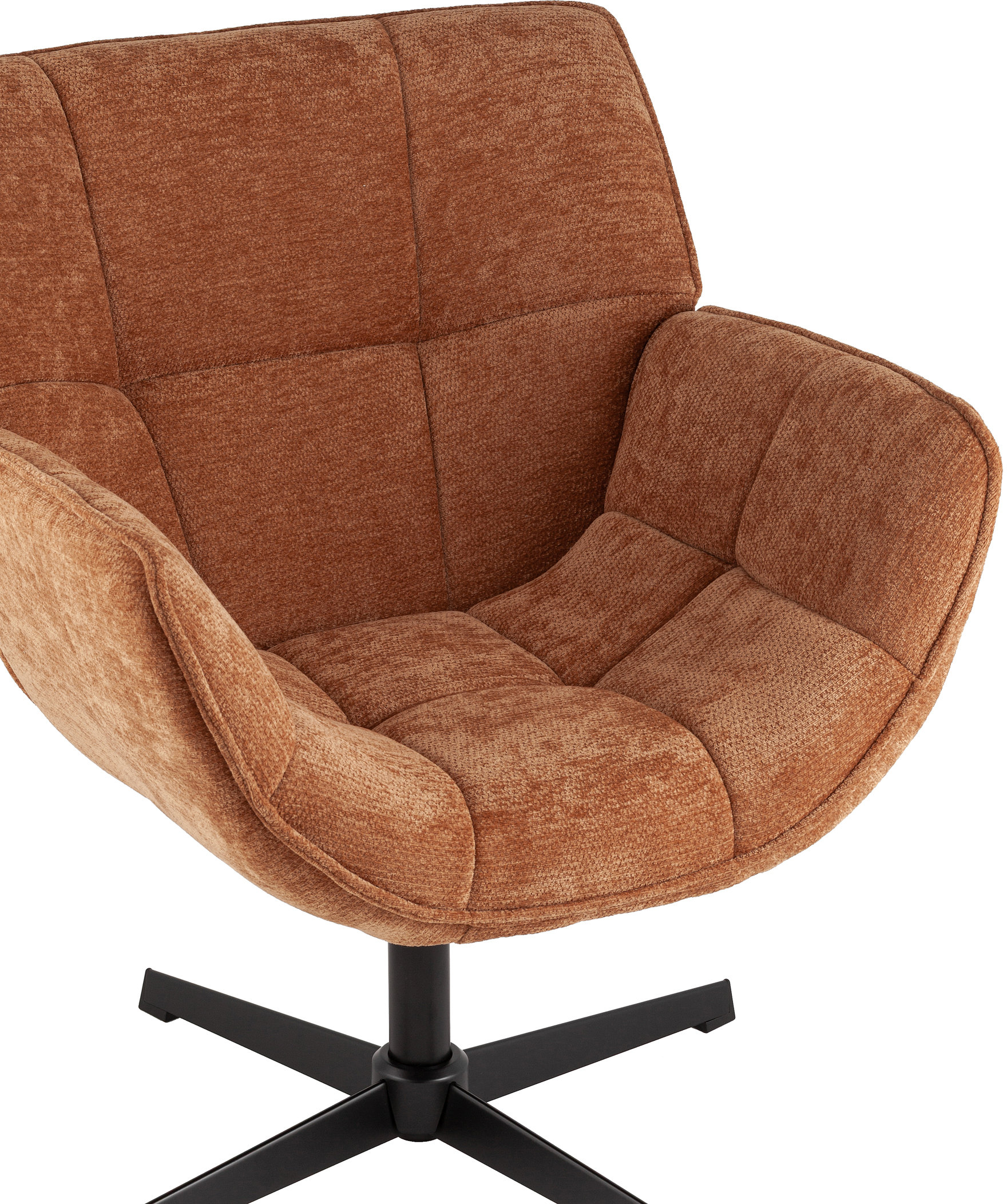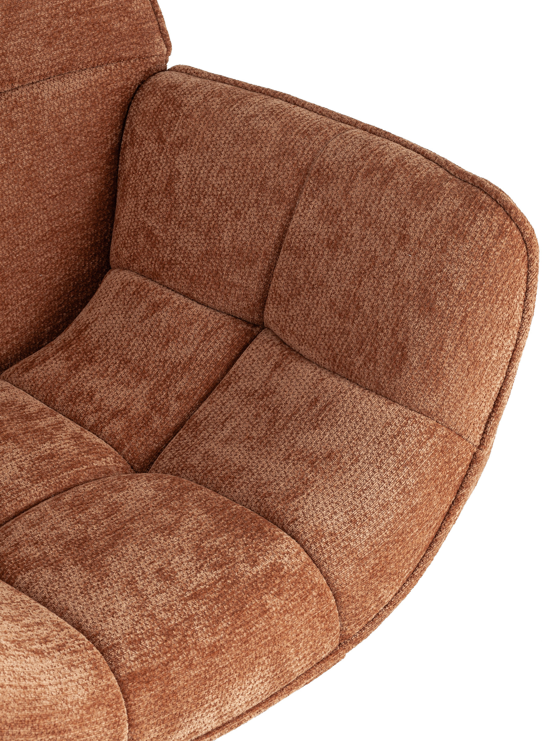 Обивка выполнена из шенилла — материала, который отличается мягкой, бархатистой текстурой и высокой прочностью. Шенилл устойчив к истиранию, сохраняет насыщенность цвета и презентабельный внешний вид в течение долгого времени. Материал приятен на ощупь и не требует сложного ухода, что делает кресло идеальным для ежедневного использования.