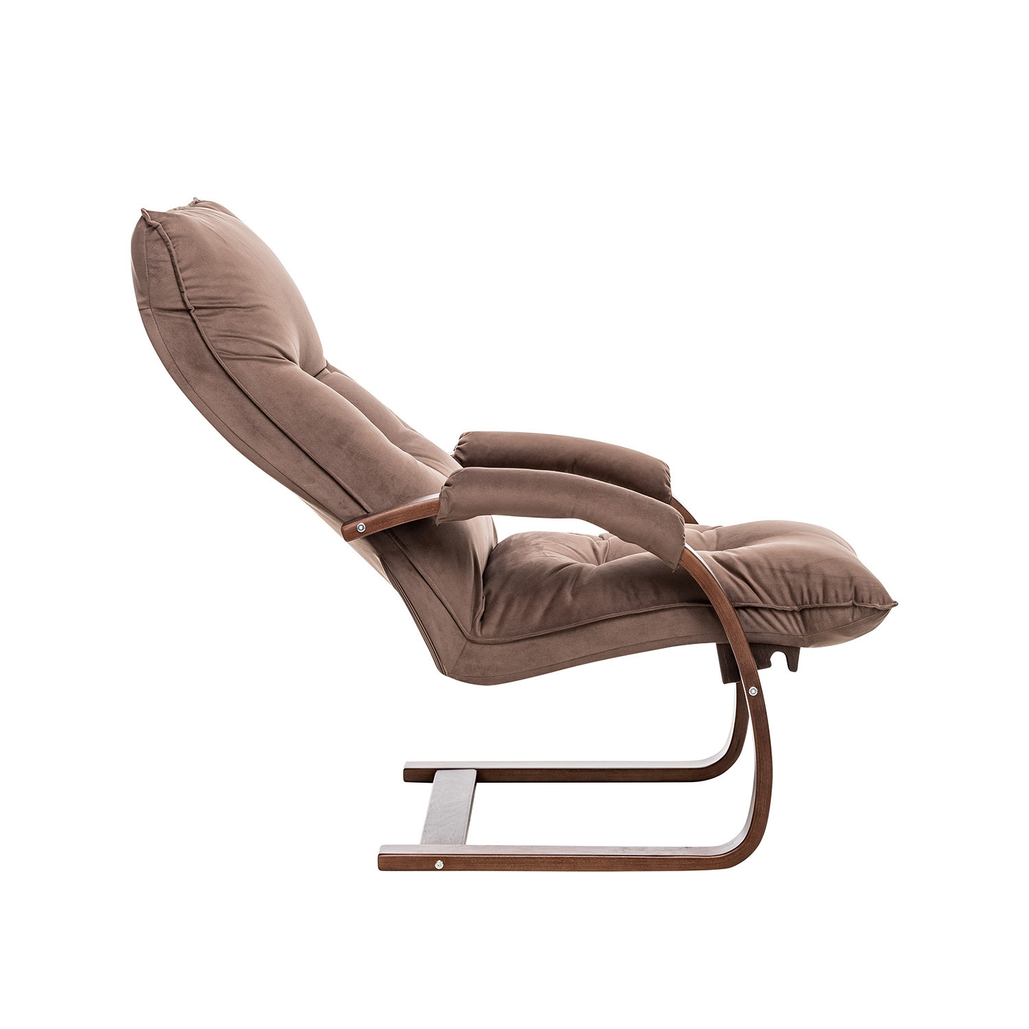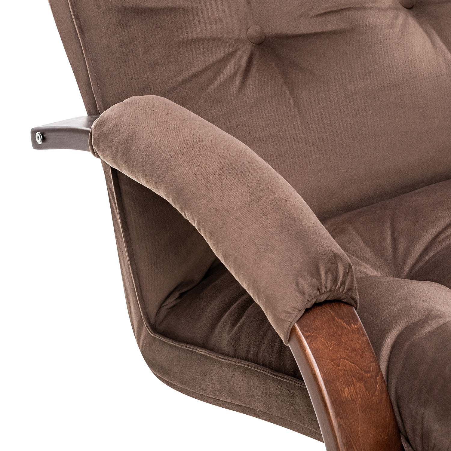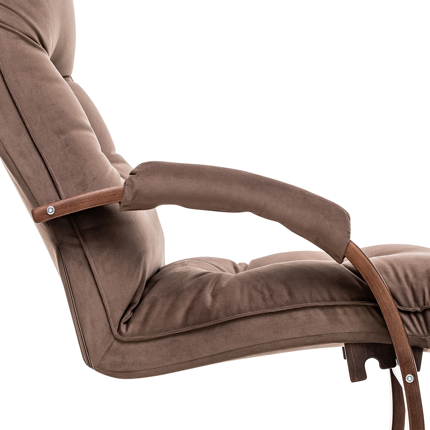 Кресло оснащено механизмом регулировки наклона спинки, который позволяет переключать положение в 4 режима. Это делает модель похожей на шезлонг, но при этом она остаётся полноценным креслом для отдыха. Каркас выполнен из прочного дерева с двумя слоями итальянского лака, что обеспечивает долговечность и защиту от повреждений.