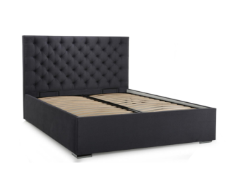 - Особенности: высокое мягкое изголовье, подъемный механизм с доступом к просторному ящику для хранения