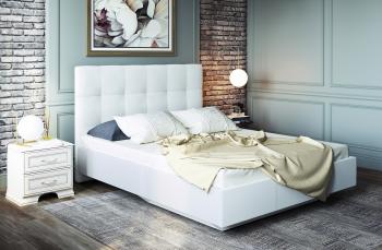 Царги и изножье из ДСП 22 мм + синтепон 200 гр./м2 + кожзам, изголовье из ДСП + ДВП + ППУ 30 мм + синтепон 200 гр./м2, внутренний каркас ящика из ЛДСП белого.