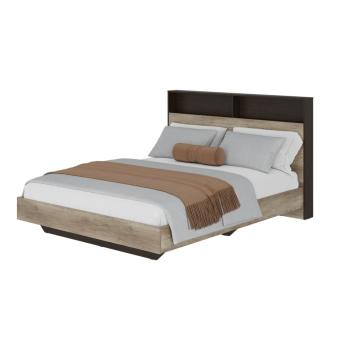 Кровать выполнена в спокойных оттенках “дуб каньон” с эффектом натурального шпона, что придаёт ей элегантность и строгость. Фасадные части цвета “дуб каньон” кромятся цветом “венге”, создавая стильный контраст. Толщина кромки составляет 0,4 мм, а опоры выполнены из пластика.