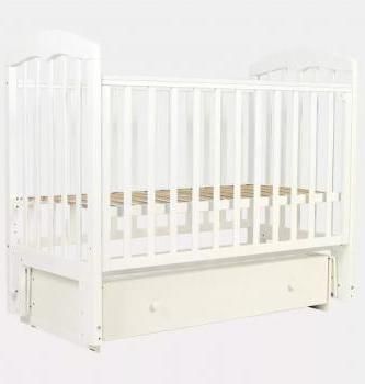 Изящный дизайн, плавные линии, умеренная цена и высокое качество обработки дерева- вот главное преимущество этой модели! Для удобства наклона к малышу, верхняя боковая планка снимается нажатием кнопки. Ортопедические свойства ложа обеспечивают гнутые рейки “латофлекс”. Для защиты зубок ребенка и поверхности ограждения, на верхние планки кроватки крепятся специальные накладки “грызунки”. Пластиковая маятниковая опора подшипникового типа выдерживает нагрузку до 291 кг, а также обеспечивает плавность качания. Вкручивающийся стопор маятникого механизма обеспечивает надежную и безопасную фиксацию. Вместительный выкатной ящик закрытого типа защищает вещи от попадания пыли. Маятниковый механизм поперечного качания.