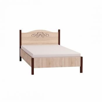 Фигурное изголовье кровати ADELE выгодно подчеркивается толстыми (50 мм) кроватными опорами из МДФ. Изящный вензельный рисунок шоколадного цвета в соответствии с цветом опор нанесен с помощью УФ-печати. Данный метод нанесения гарантирует экологичность, долговечность использования и устойчивость к истиранию.