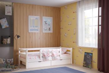 Вариант 4 Кровать «Соня» с защитой по центру — один из примеров идеального сочетания практичности, оригинальности и долговечности. Цветовое исполнение подходит сразу для нескольких стилей, а габариты — для комнат разной площади. Мебель для детской создается из безопасных материалов с отличной износостойкостью.
