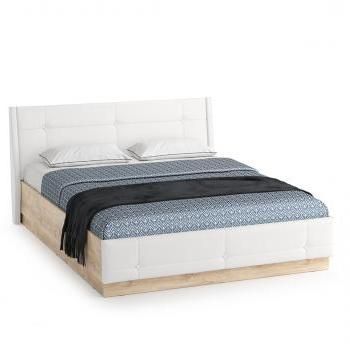 Кровать Mobi Муссон 11.28 – это идеальное сочетание современного дизайна, функциональности и комфорта. Модель выполнена в стильном двухцветном исполнении: корпус из МДФ и ЛДСП цвета "дуб эндгрейн элегантный" дополнен мягкой обивкой из искусственной кожи белого оттенка. Такое решение делает кровать универсальной для разных интерьеров.