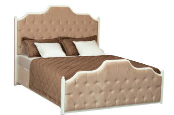 Кровать двуспальная 61.09 “Белла” с фигурными, мягкими изголовьем и изножьем в стиле Прованс. Кровать оборудована подъемным механизмом. Спальное место 1400х2000мм. Изделие установлено на высокие пластиковые опоры. Матрас к кровати приобретается ОТДЕЛЬНО, рекомендуемая высота матраса 180-200мм.