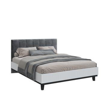 Стильная полутороспальная кровать. Каркас изготовлен из ЛДСП 16 мм в декоре белое сияние, опоры из массива березы покрыты черным лаком. Мягкая спинка из ДСП 16 мм, обивочный материал – микровелюр ткань Бренди Лайт 26, наполнение пенополиуретановый материал, спанбонд.