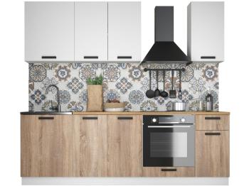 Кухонный гарнитур Империал Ника Нео 2,4 м – это отличное решение для компактных кухонь, выполненное в стилях сканди, лофт и экоминимализм. Купить кухонный гарнитур Империал Ника Нео 2,4 м в Москве можно легко и быстро. Этот практичный комплект включает модули с простыми фасадами из ЛДСП, оформленными в современных природных оттенках и классическом белом цвете, что создает уютную и гармоничную атмосферу, визуально увеличивая пространство.