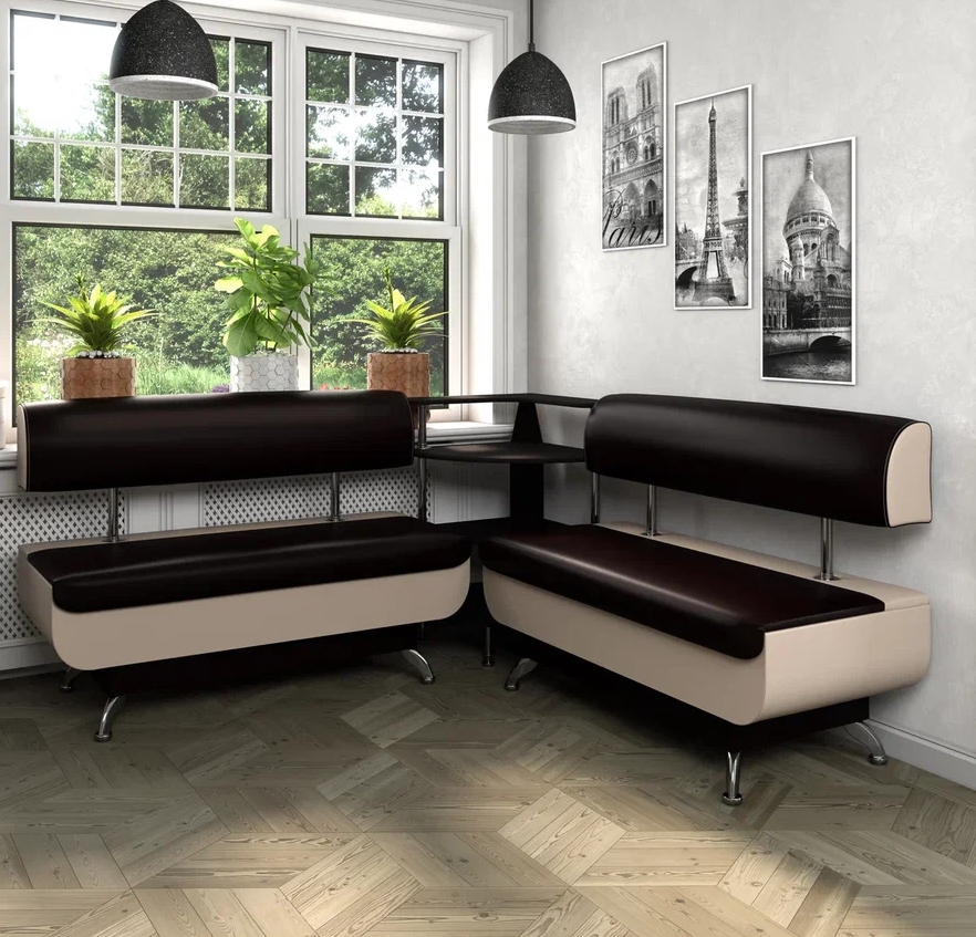 Кухонный набор – прекрасное решение оформления обеденной зоны. В набор входит: 1) кухонный угловой диван Валенсия с легким воздушным дизайном. Диван установнен на металлические хромированные ножки, а вместительные ящики для хранения порадуют любую хозяйку. Угол дивана универсальный, собирается и в левом и правом исполнении. Связующим элементом дивана является открытая этажерка. 2) Обеденный стол ФЛОРИДА раздвижной – столешница изготовлена из ЛДСП 16 мм, сверху стекло 4 мм с фотопечатью. 3)Рим – удобный и эргономичный стул. Спинка и сиденье стула являются монолитными, выполненными из прочной гнутоклееной фанеры. Прочное основание ножек стула является металлическим, цельносваренным в один единый каркас. 2 шт
