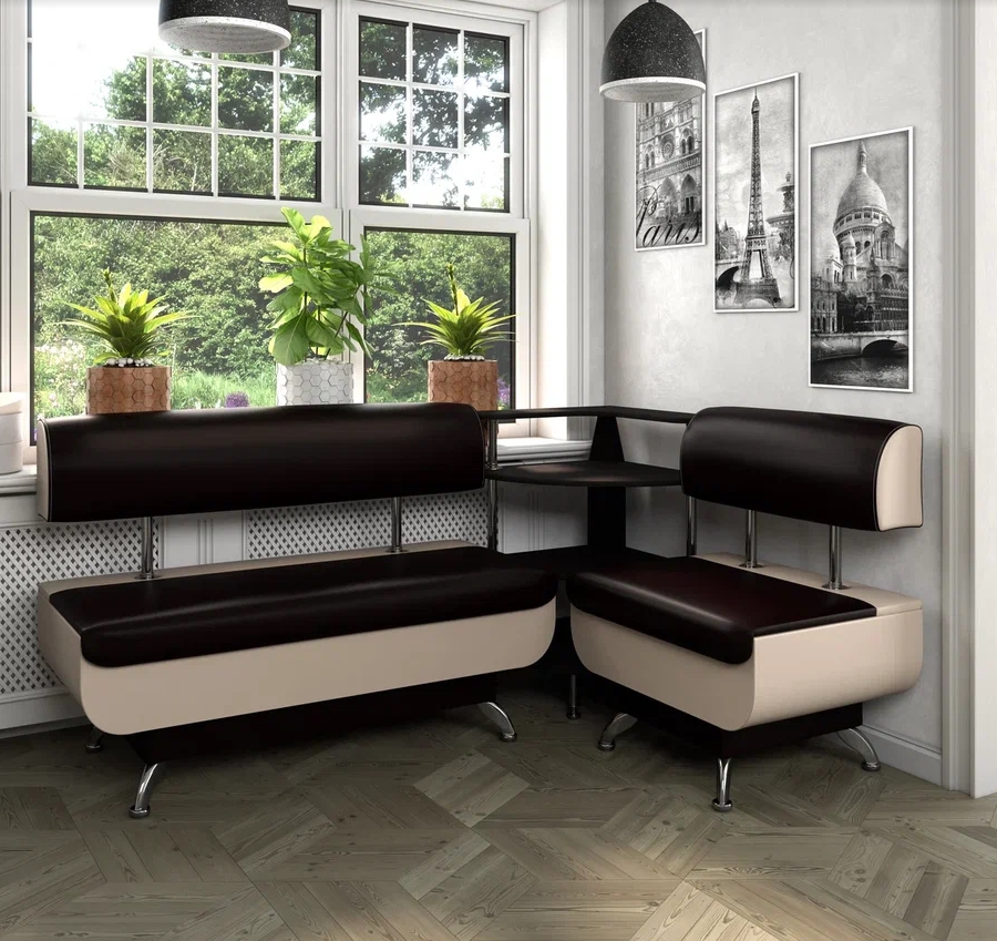 Кухонный набор Betel Угловой диван Валенсия (МД-1200+ПУ-500+МД-600)+ стол Флорида СМ-5 нога массив прямая+Стул Рим 2шт.