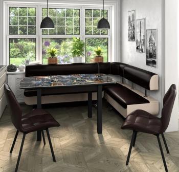 Кухонный набор – прекрасное решение оформления обеденной зоны. В набор входит: 1) кухонный угловой диван Валенсия с легким воздушным дизайном. Диван установнен на металлические хромированные ножки, а вместительные ящики для хранения порадуют любую хозяйку. Угол дивана универсальный, собирается и в левом и правом исполнении. 2) Обеденный стол ФЛОРИДА раздвижной – столешница изготовлена из ЛДСП 16 мм, сверху стекло 4 мм с фотопечатью. 3)Рим – удобный и эргономичный стул. Спинка и сиденье стула являются монолитными, выполненными из прочной гнутоклееной фанеры. Прочное основание ножек стула является металлическим, цельносваренным в один единый каркас. 2 шт