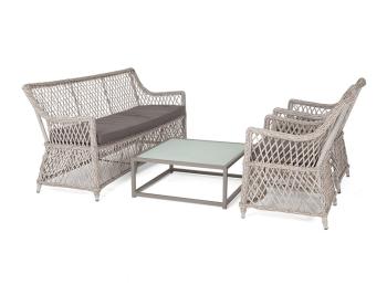 Лаунж зона «Асти-Касабланка » подходит для размещения четырех персон. За прочность конструкции отвечает каркас из алюминия.