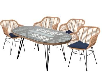 - Материалы: стальной каркас, искусственный ротанг и стеклянная столешница