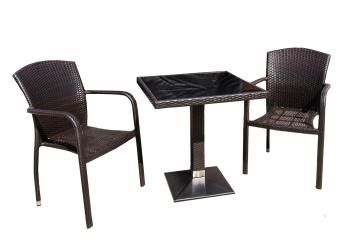 Набор Амиго Мини сочетает в себе современный дизайн и практичность. Искусственный ротанг не выгорает на солнце и устойчив к атмосферным воздействиям, а прочное стекло столешницы легко чистится. Стальной каркас гарантирует долговечность конструкции.