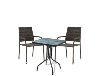 • Материалы: стальной каркас, столешница из стекла, сиденья из искусственного ротанга