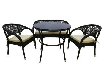 Комплект рассчитан на 4 персоны – идеальное решение для семейных посиделок или встреч с друзьями. Стеклянная столешница придает набору легкость и элегантность, а нейтральная цветовая гамма позволяет гармонично вписать мебель в любой ландшафтный дизайн.