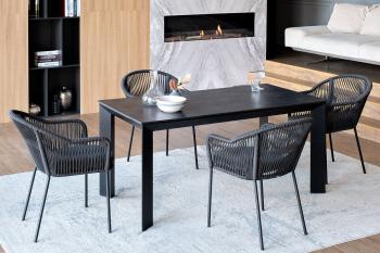- 4 плетеных стульев «Лион» из роупа, размером – 570×620×820 мм, цвет роупа – темно-серый, каркас алюминий, окрашен порошковой краской в темно-серый (RAL7024) оттенок.