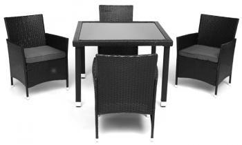 Обеденный сет сплетен из искусственного ротанга. Круглогодично может использоваться на летних верандах, террасах и садовых площадках. Искусственный ротанг неприхотлив в использовании, легко моется. Поставляется в разобранном виде. Оригинальная и эргономичная форма кресел обеспечивают изделию комфорт, а цвет и подушки следуют модным трендам этого сезона.