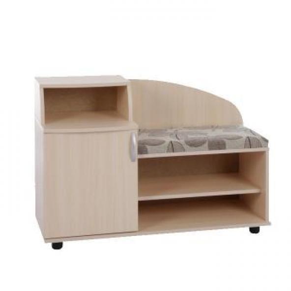 - Многофункциональность – включает шкаф для обуви, открытые полки и мягкое сиденье