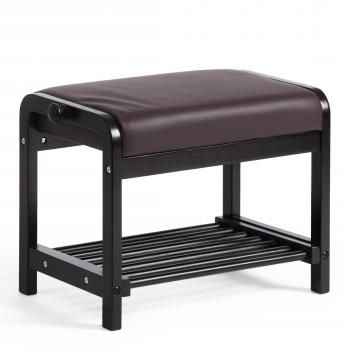 Оригинальная обувница AX-1021 поможет правильно организовать пространство в вашей прихожей или гардеробной. Прочный корпус модели изготовлен из массива березы. Такой материал не деформируется и не теряет своего первоначального вида на протяжении длительного времени. Мягкое сиденье обувницы обито экокожей. Такая поверхность практична и устойчива к воздействию влаги. Сочетание деревянного основания цвета венге и темно-коричневой экокожи позволяет использовать модель в любом стиле и интерьере. Под мягким сиденьем расположена открытая полка, подходящая для любых размеров и типов обуви. Компактная обувница AX-1021 будет уместна как в гардеробной загородного дома, так и в прихожей городской квартиры. Такая модель станет изюминкой вашего интерьера, восхитит практичностью и вместительностью даже самых требовательных владельцев и их гостей. Модель очень проста в сборке, инструкция по сборке прилагается.
