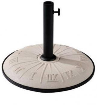 Бетонная основа для зонта 15 кг; ø450 мм, цвет белый; дизайн в виде часов, трубка из черной стали: 280x ø48x1.2 мм, круглая, с соединительным кольцом: ø38, ø35, ø30 мм, без колес