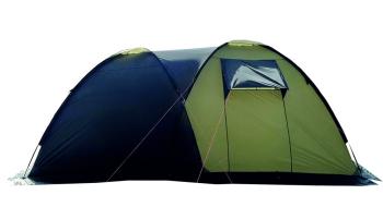 Четырёхместная кемпинговая двухслойная палатка семейного типа с просторным спальным отделением и тамбуром. Удобная конструкция позволяет справиться с установкой палатки даже новичку. Входы в палатку и спальное отделение снабжены москитной сеткой. Вентиляционные окна, ветрозащитная юбка. Навес-козырек. Палатка дополнительно фиксируется при помощи оттяжек.