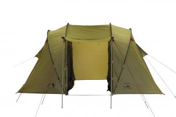 Палатка Indiana Twin 4 рассчитана на удобное размещение 4 взрослых людей. Две раздельные комнаты, в каждой из которых может спать по 2 человека, отделены друг от друга большим тамбуром. Его можно сделать ещё просторнее за счёт открывающихся стенок, из которых собирается навес. У вас будет достаточно места, где можно установить кемпинговую мебель, оборудовать кухню и организовать хранение вещей. Палатка отлично проветривается — все помещения оснащены вентиляционными окнами с защитными козырьками и москитными сетками. Ставится и собирается эта модель буквально за несколько минут.