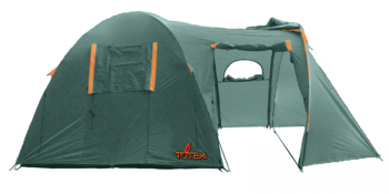 Кемпинговая палатка Totem Catawba 4 (V2) – двухслойная кемпинговая палатка с двумя входами и большим тамбуром. Вход спального отделения продублирован москитной сеткой. Большое спальное отделение, два больших вентиляционных окна, все швы проклеены. Высокая 185 см. Огромный тамбур шириной 200 см. Относительно небольшой вес, как для кемпинговой палатки.