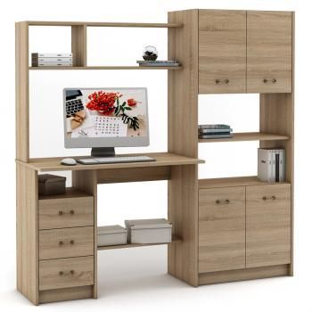 Письменный стол МФ Владимир Август-12 КСАВГ-12 – это красивая многофункциональная мебель, которая выполняет несколько функций. Подобная модель станет хорошим дополнением к рабочему кабинету. Также с помощью такого стола можно обустроить детям или подросткам, отличное место для учебы. Кроме стола, в комплекте есть еще надстройка с полками открытого типа. Сбоку разместился вместительный шкаф, а с другой стороны есть три выдвижных ящика для хранения мелочи. Модель доступна для заказа в нескольких цветовых решениях.