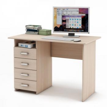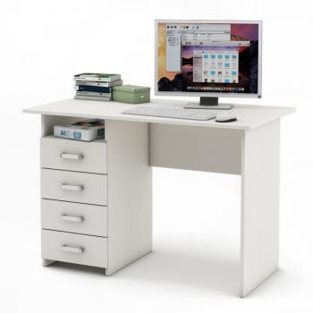 Письменный стол МФ Владимир Лайт-4 – идеальный вариант для маленьких помещений, ведь стол очень лаконичный и не занимает много места.. Подобная модель станет хорошим дополнением к рабочему кабинету. Также с помощью такого стола можно обустроить детям или подросткам, отличное место для учебы. В наличии есть четыре выдвижных ящика и полка открытого типа. Мебель можно приобрести в нескольких цветовых вариантах.