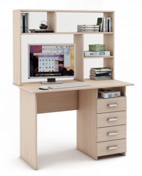 Письменный стол МФ Владимир Лайт-5 с надстройкой – практичная мебель, которая отлично дополнит любое интерьерное решение. В наличии есть четыре выдвижных ящика и полка открытого типа. А также имеется надстройка с четырьмя полками открытого типа. Мебель можно приобрести в нескольких цветовых вариантах. Подобная модель станет хорошим дополнением к рабочему кабинету. Также с помощью такого стола можно обустроить детям или подросткам, отличное место для учебы. Это идеальный вариант для маленьких помещений, ведь стол очень лаконичный и не занимает много места.