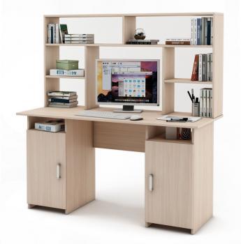 Письменный стол МФ Владимир Лайт-6 с надстройкой – дополнит любое интерьерное решение. В наличии есть по одной нише с дверцами, размещены по обеих сторонах стола. Над нишами предусмотрено по одной полочке открытого типа. Также, к данному столу предусмотрена надстройка с шестью полками открытого типа.Подобная модель станет хорошим дополнением к рабочему кабинету. Также с помощью такого стола можно обустроить детям или подросткам, отличное место для учебы. Стол достаточно просторный, но при этом не занимает много места. Мебель можно приобрести в нескольких цветовых вариантах.