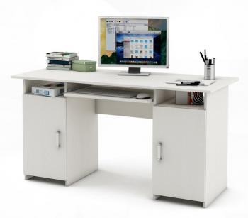 Письменный стол МФ Владимир Лайт-6К – отлично дополнит любое интерьерное решение. В наличии есть по одной нише с дверцами, размещены по обеих сторонах стола. Над нишами предусмотрено по одной полочке открытого типа. Также, здесь есть выдвижная полка для клавиатуры. Подобная модель станет хорошим дополнением к рабочему кабинету. Также с помощью такого стола можно обустроить детям или подросткам, отличное место для учебы. Стол достаточно просторный, но при этом не занимает много места. Мебель можно приобрести в нескольких цветовых вариантах.