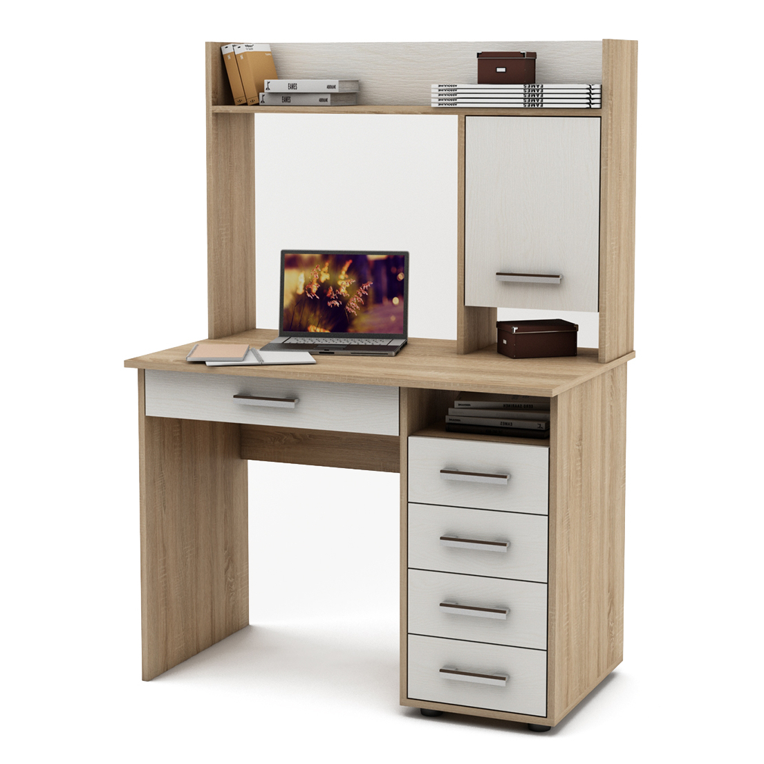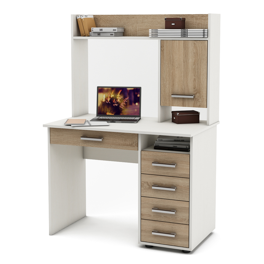 Письменный стол МФ Владимир Остин-11Я, это функциональная модель. Высота надстройки не перекроит просвещение и вы легко дотянетесь до
