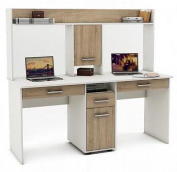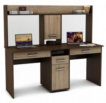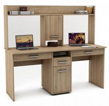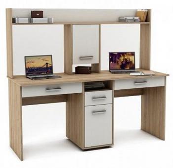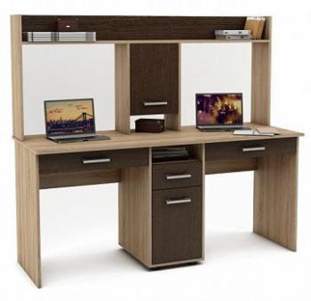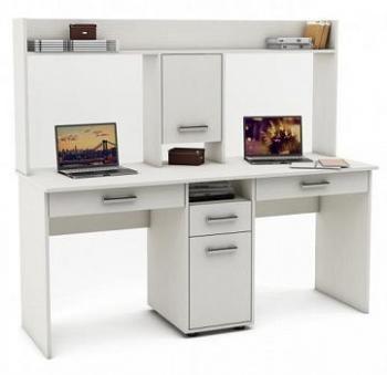 данный вариант мебели – это ваш вариант. Два рабочих места, объединенных общей тумбой и общей надстройкой. Стол найдет свое применение не