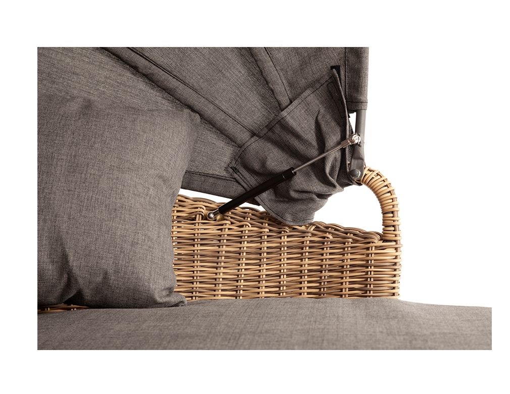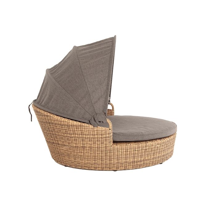 Круглая кровать из искусственного ротанга “Стильяно” никого не оставит равнодушным благодаря своему неординарному дизайну. Данная модель имеет в основании прочный алюминиевый каркас, оплетенный вручную ротангом и оснащена регулируемым козырьком, который ограничивает попадание солнечных лучей. Диаметр кровати составляет 1800мм, а высота 700мм. Комплектацией предусмотрен набор из четырех серых подушек и одного матраса, состоящих из высококачественного полиэстера с водоотталкивающей пропиткой.