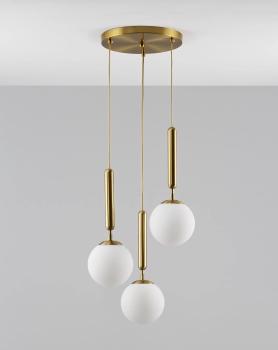 Подвесной светильник из коллекции Host в современном стиле. Минимализм и утончённый дизайн. Металлический каркас цвета латунь гармонично сочетается с матовыми плафонами в форме шара. Общая высота светильника 120 см., отличное решение для высоких потолков. Данная модель сможет дополнить любой современный интерьер дома и подойдёт для освещения спальни, кухни, холла или гостиной комнаты. При монтаже светильника, плафоны можно отрегулировать по высоте.