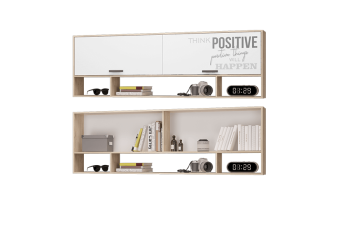 Полка для книг Джуниор станет отличным дополнением уютного интерьера детской комнаты. Изделие гармонично сочетается как с письменным столом, так и с кроватью. Открытые ниши пригодятся для размещения любимых вещей ребенка, а за двумя подъемными дверцами находится достаточно места для хранения интересных и увлекательных книг.