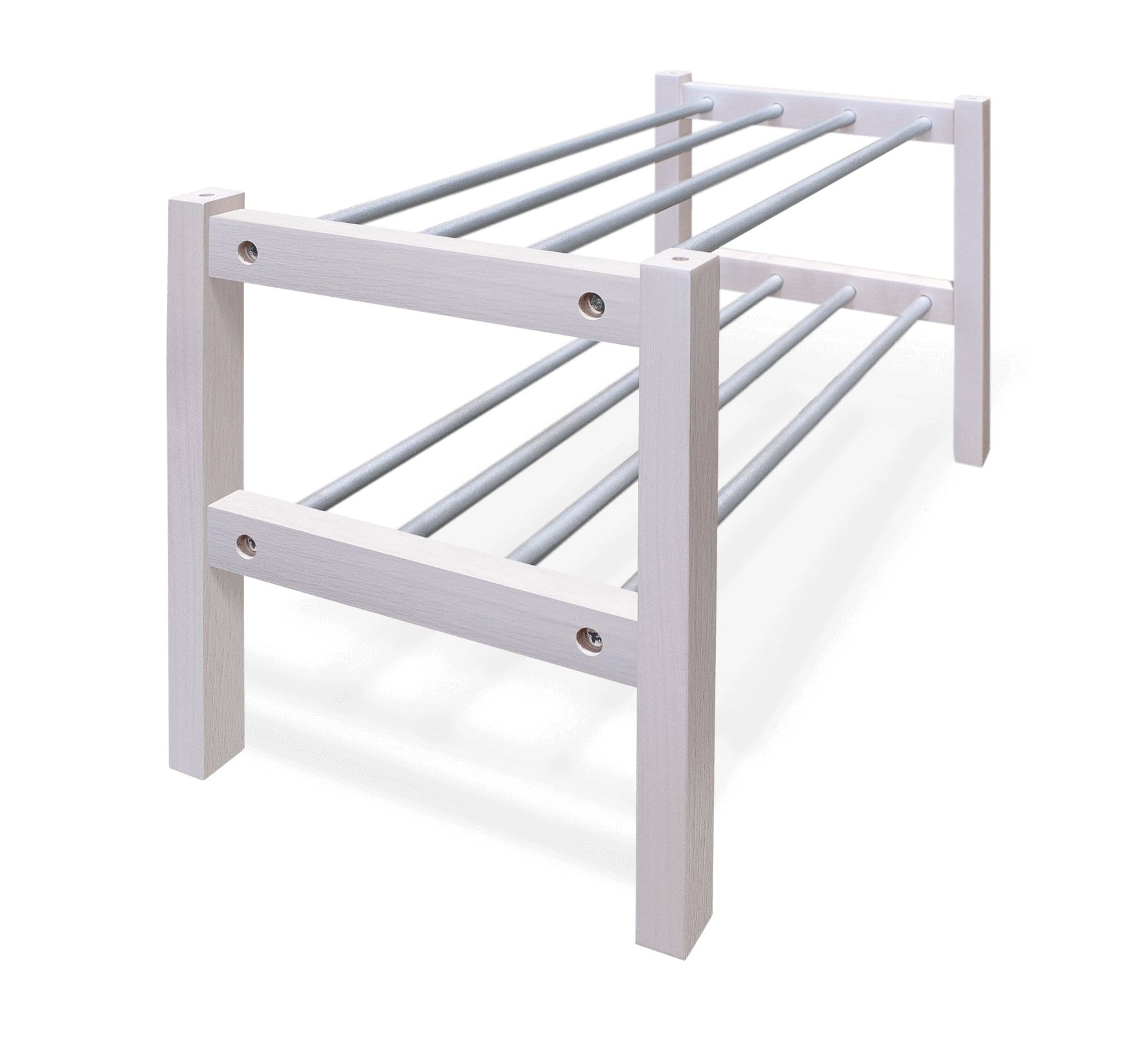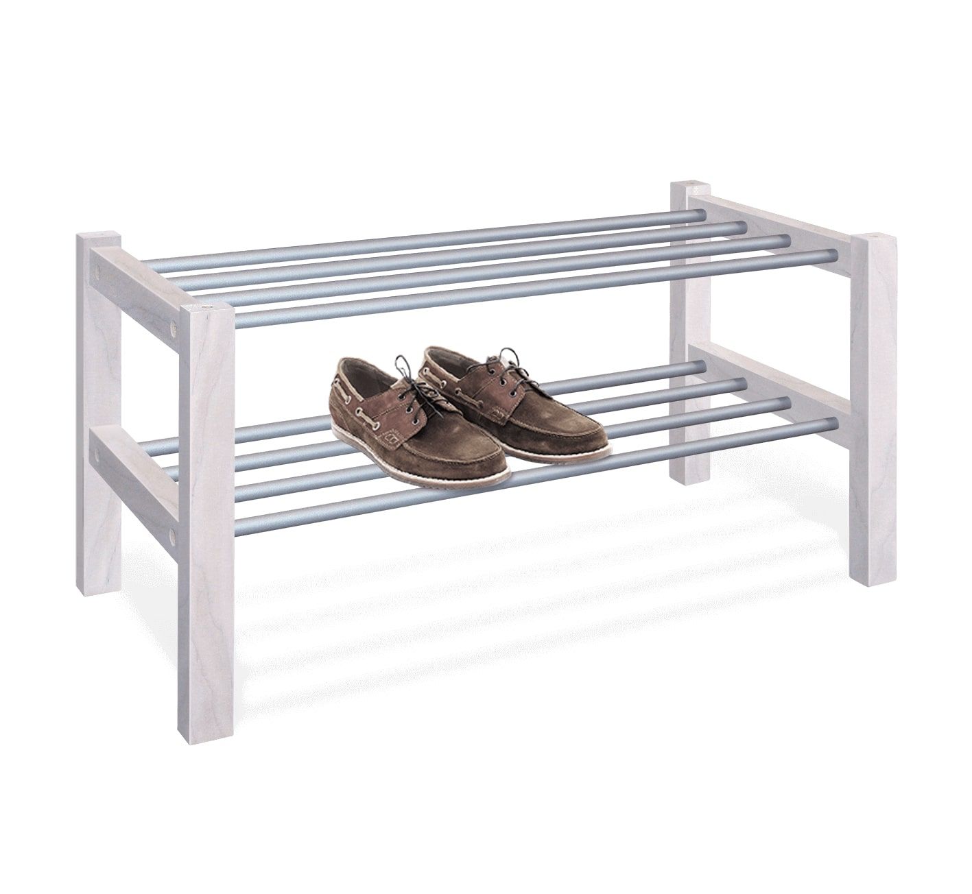 Полка штабелируется, что позволяет экономить место и хранить больше обуви.