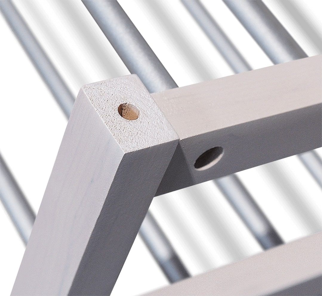 Выполнена из массива древесины, брус 34х24 мм., и металла, труба 12х0,8 мм.